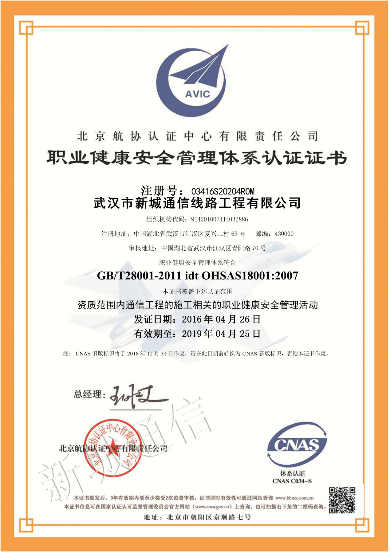 職業(yè)健康安全管理體系認(rèn)證證書(shū)